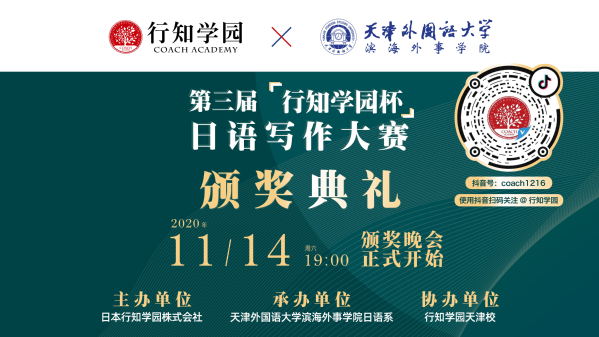 11月14日晚7点,第三届“行知学园杯”日语写作大赛线上颁奖典礼在天津隆重举办。我院荣获“最具创意奖”的孙润昊同学在颁奖典礼上发表了获奖感言。