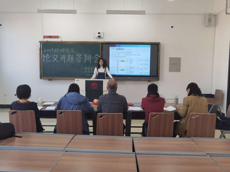 2019级硕士研究生依次上台对自己开题报告中涉及的课题来源及意义、国内外研究现状、主要研究内容、研究方法、论文框架等问题进行了阐述。评委根据每位同学所阐述的信息和开题报告的内容,从选题的来源、重要概念的界定、论文整体的构思和框架结构等方面,对答辩同学提出了专业的意见和改进的方法。