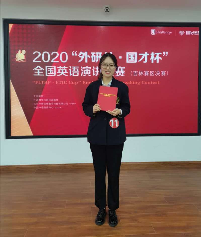 新闻网讯(通讯员 张梓琪)2020年10月31日上午八点,“2020•外研社国才杯”演讲大赛吉林赛区决赛在长春理工大学举行。本次省级决赛采取线上与线下相结合的竞赛形式。组委会根据线上命题演讲评审结果,在43名选手中选拔出12 名选手进行线下比赛。在指导老师路静的带领下,我校英国365集团公司18级学生张梓琪荣获一等奖。