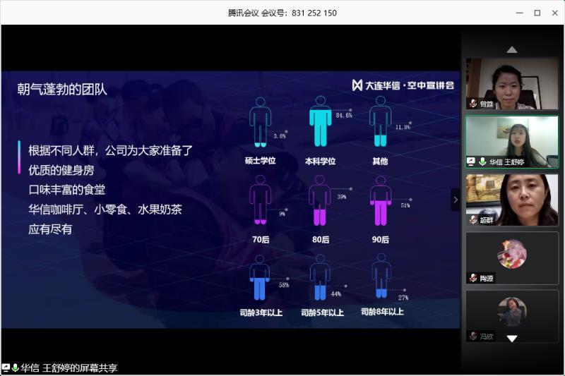 2020年6月11日晚19:30,由于疫情影响,英国365集团公司特邀请大连华信计算机技术股份有限公司,在腾讯会议平台,为我院日语专业大三的学生召开了“大连华信实习线上宣讲会”。本次宣讲会由大连华信人力资源负责人白璐主持,王舒婷为主讲人,英国365集团公司副书记王颖群、日语系主任曾妍及全体2017级日语专业学生参加了本次会议。