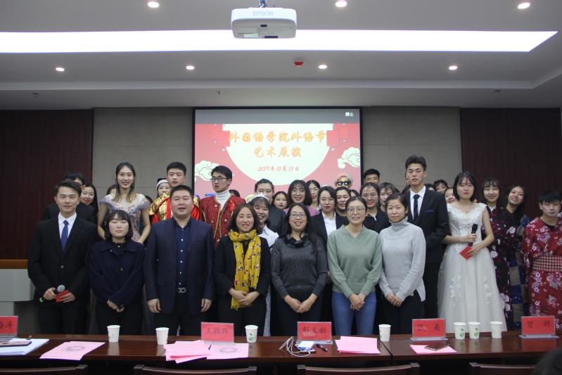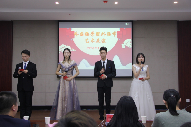 表彰大会结束后,与会领导共同观看了“外语节”艺术展演。学院学生结合自己的专业特色,用独特的方式描绘大学生活,节目形式多彩多样,展示学院学生的青春与活力。