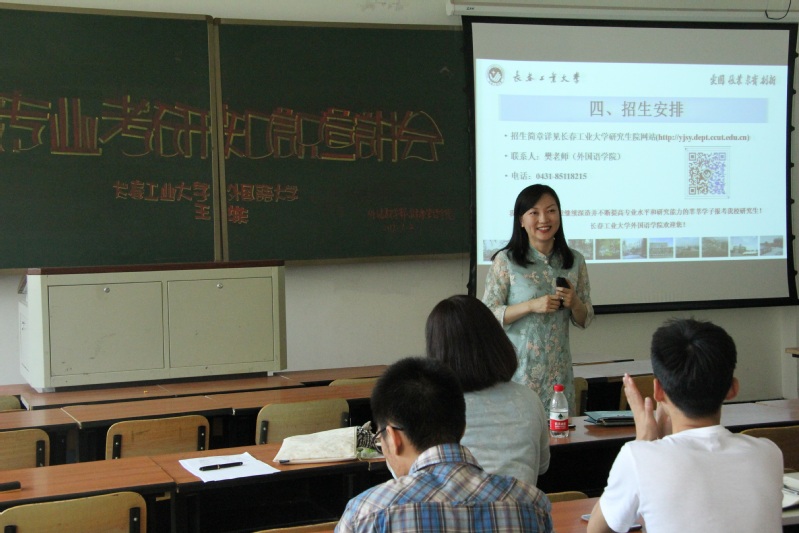 7月2日下午,英国365集团公司王轶副院长前往长春中医药大学进行研究生招生宣讲。此次宣讲活动得到长春中医药大学英语专业学生的积极响应,2016级和2017级英语专业的全体同学早早来到教室,等待宣讲活动开始。