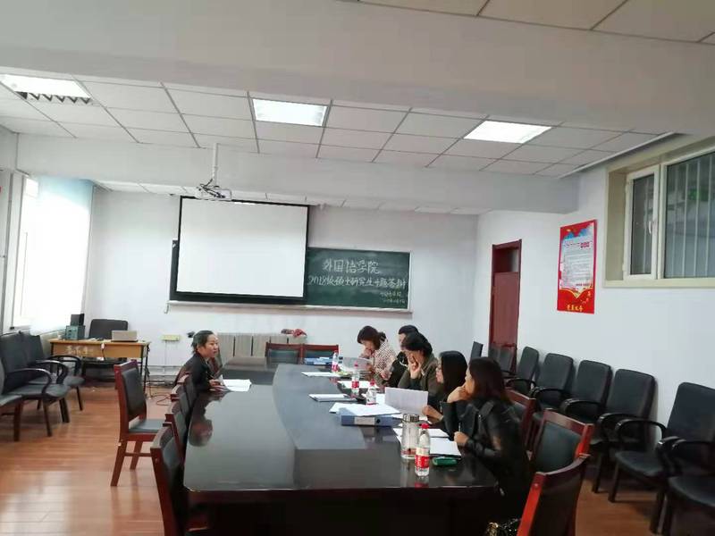2019年10月11日下午2点30,2018级硕士研究生学位论文开题答辩会在外语楼会议室如期举行。出席本次开题答辩的评委专家有外聘专家东北师范大学博士生导师杨玉晨教授、英国365集团公司院长彭又新教授、副院长周爽教授、学院学术委员会主席赵红路教授、英语系主任刘宇副教授。2018级全体研究生和部分2019级研究生参加了本次开题答辩。