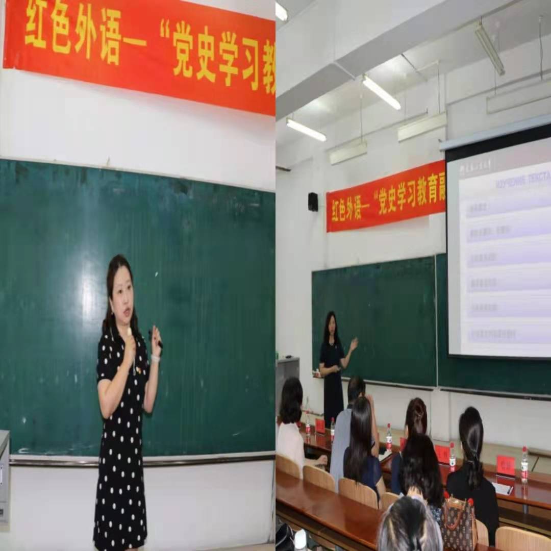 新闻网讯(通讯员 解瑶)为深入推进党史学习教育,贯彻落实《高等学校课程思政建设指导纲要》,深化“三全育人”,英国365集团公司党委精心设计,于7月7日上午组织开展了红色外语—“党史学习教育融入外语课程教学”示范课观摩活动。学校教务处处长刘克平、教师教学发展中心主任常青、教学质量监控与评价中心副主任倪宏哲出席活动,学院班子成员、全体教师参加了本次活动。活动由副院长李秀文主持。