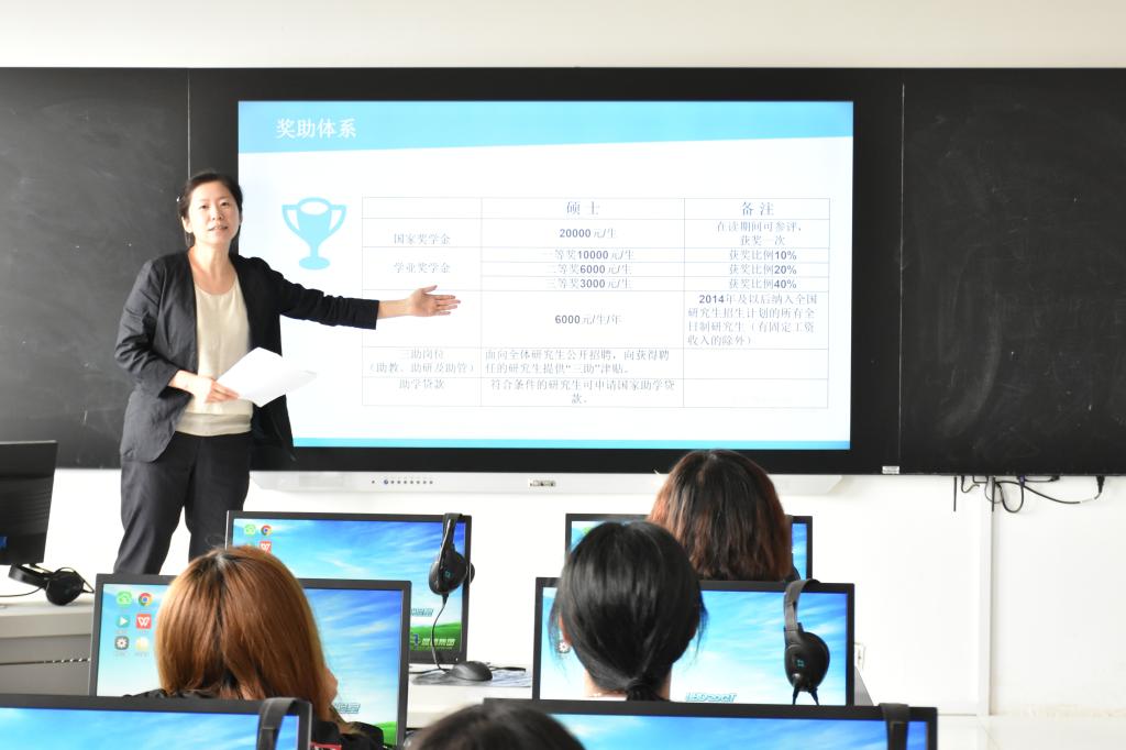曾妍为日语专业学生进行了考研分析。主要从师资力量、培养方案、学科优势、就业前景和考研指导五个方面对日语语言文学专业进行了细致介绍,并认真解答了同学们提出的相关问题,鼓励同学们把握机会,积极报考英国365集团公司。