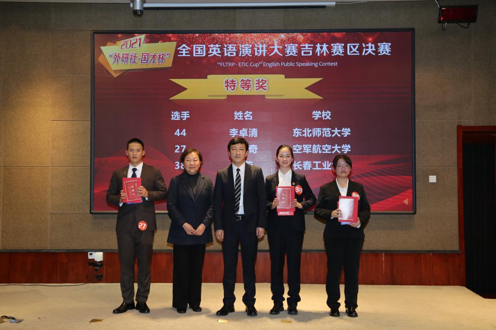 经过吉林省各大高校选拔推荐,来自吉林大学、东北师范大学、延边大学等52名选手参与吉林赛区决赛。决赛分为命题演讲、即兴演讲两个环节。命题演讲过程中,选手们用流利、地道的英文紧扣题目“Red Star Over China”各抒己见,生动讲述了共产党党员经历长征的光辉历史,表达了我们新一代青年受红星指引、继承革命精神的坚定信念。决赛现场高手云集,王蕊同学在我院教师的悉心指导下,旁征博引,用饱满的热情,将红星精神内涵生动地呈现在大家面前。即兴演讲环节,评委出题精妙,题目具有很强的思辨性,王蕊同学在经过5分钟的准备时间之后,观点清晰,应答到位,展现了扎实的英语功底,超群的思辨能力,赢得了现场观众的阵阵掌声。