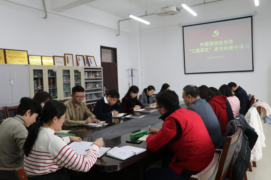 按照学院党委总体安排,本轮“三原四史”读书班继续学习中国共产党精神谱系(第一批)的伟大精神,共安排了五讲:学院办公室主任葛蔓领学了“‘两弹一星’精神”、英语系主任刘宇领学了“改革开放”精神、俄语系主任张美领学了“抗震救灾”精神,语言训练中心主任李光哲领学了“抗美援朝”精神,公共外语教学部副主任张羽华领学了“脱贫攻坚”精神。通过学习,进一步提升了大家对党的伟大精神的理解和认识,坚定了永远跟党走的信念和信心。