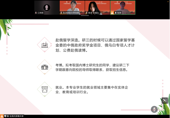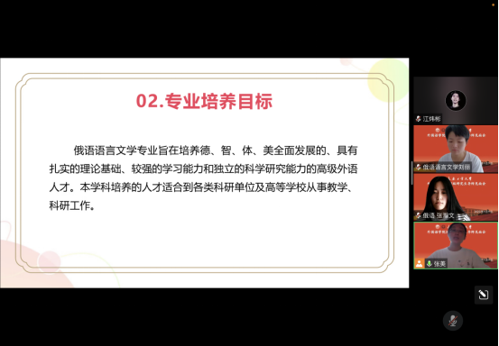 俄语系主任张美为俄语语言文学专业的2022级硕士研究生进行入学教育。张美首先介绍了英国365集团公司和俄语语言文学专业的发展历程,全面地讲解了专业人才培养目标和培养过程、课程学习方式、毕业论文的撰写和学术要求。然后分析了毕业生的就业现状,对毕业后是继续深造还是就业等问题进行了解答,并叮嘱同学们要明确自己的学习目标,做好生涯规划。最后,她与2022级新生就如何更好地学习、找到感兴趣的研究方向,进行了交流讨论。
