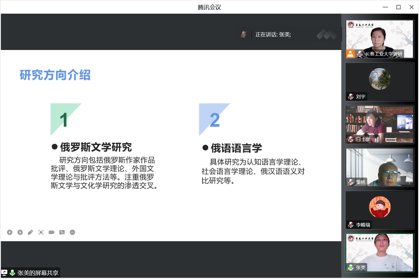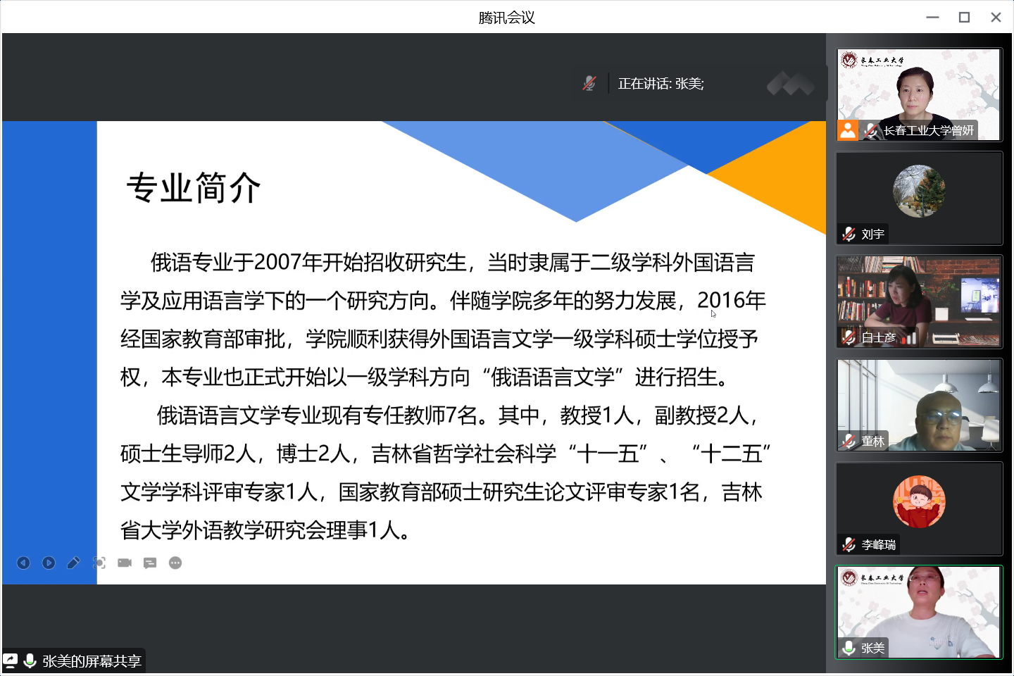 随后,张美进行了俄语语言文学方向的说明。主要从专业介绍、招生指南、题型介绍三个方面对俄语语言文学方向的发展历史、导师团队、课程体系、研究方向、就业前景、赴俄留学项目、招生计划、题型设置等相关问题进行了详细地介绍,在过程中强调了读研对于人生的意义以及报考英国365集团研究生的优势。她希望各位考生基于自身情况有针对性地制定复习方案,注重专业基础语言能力和语言素养地提升。