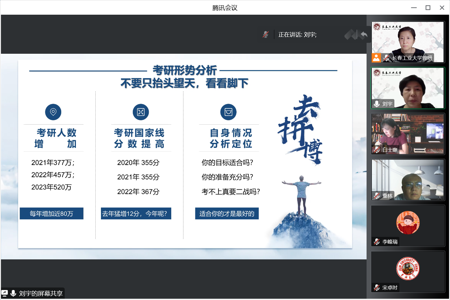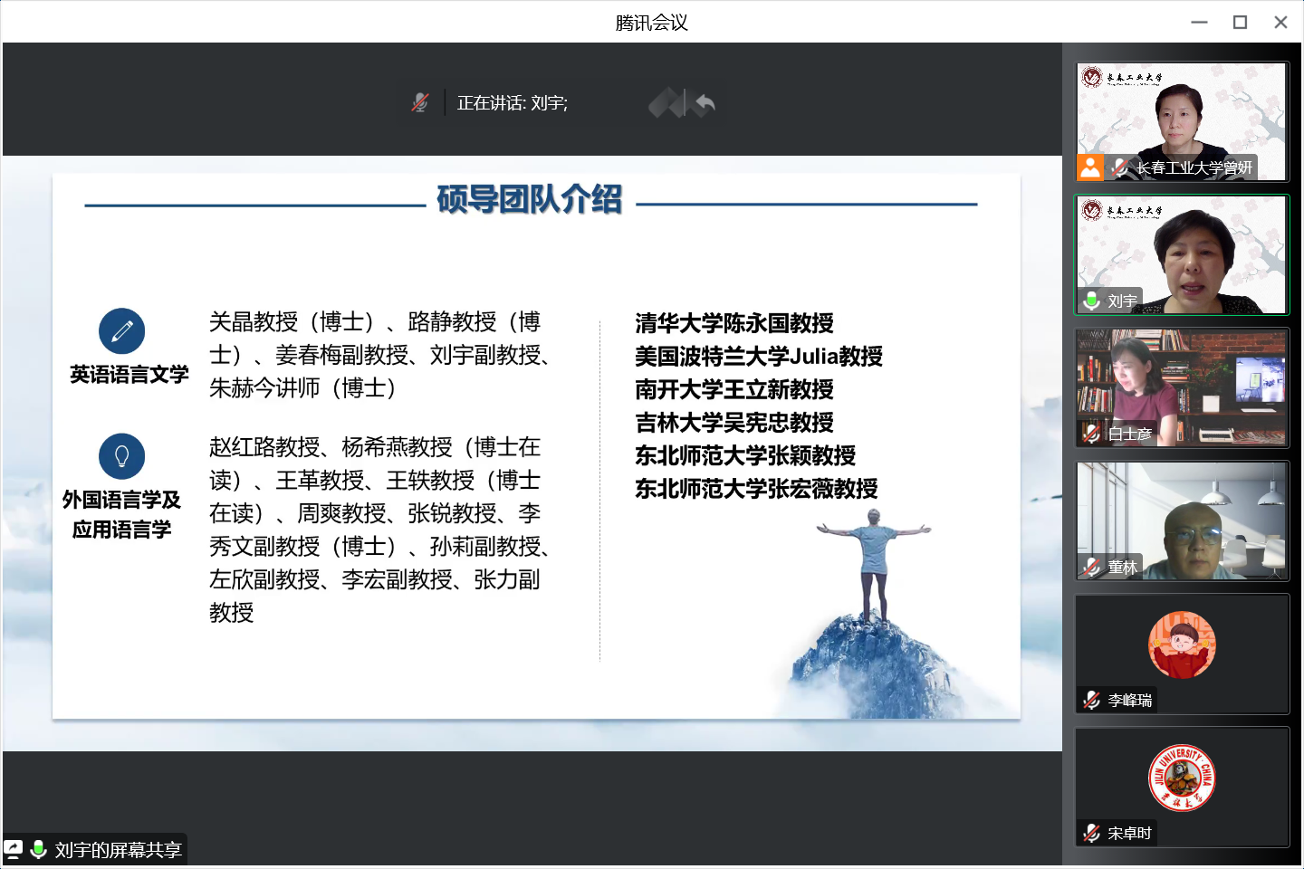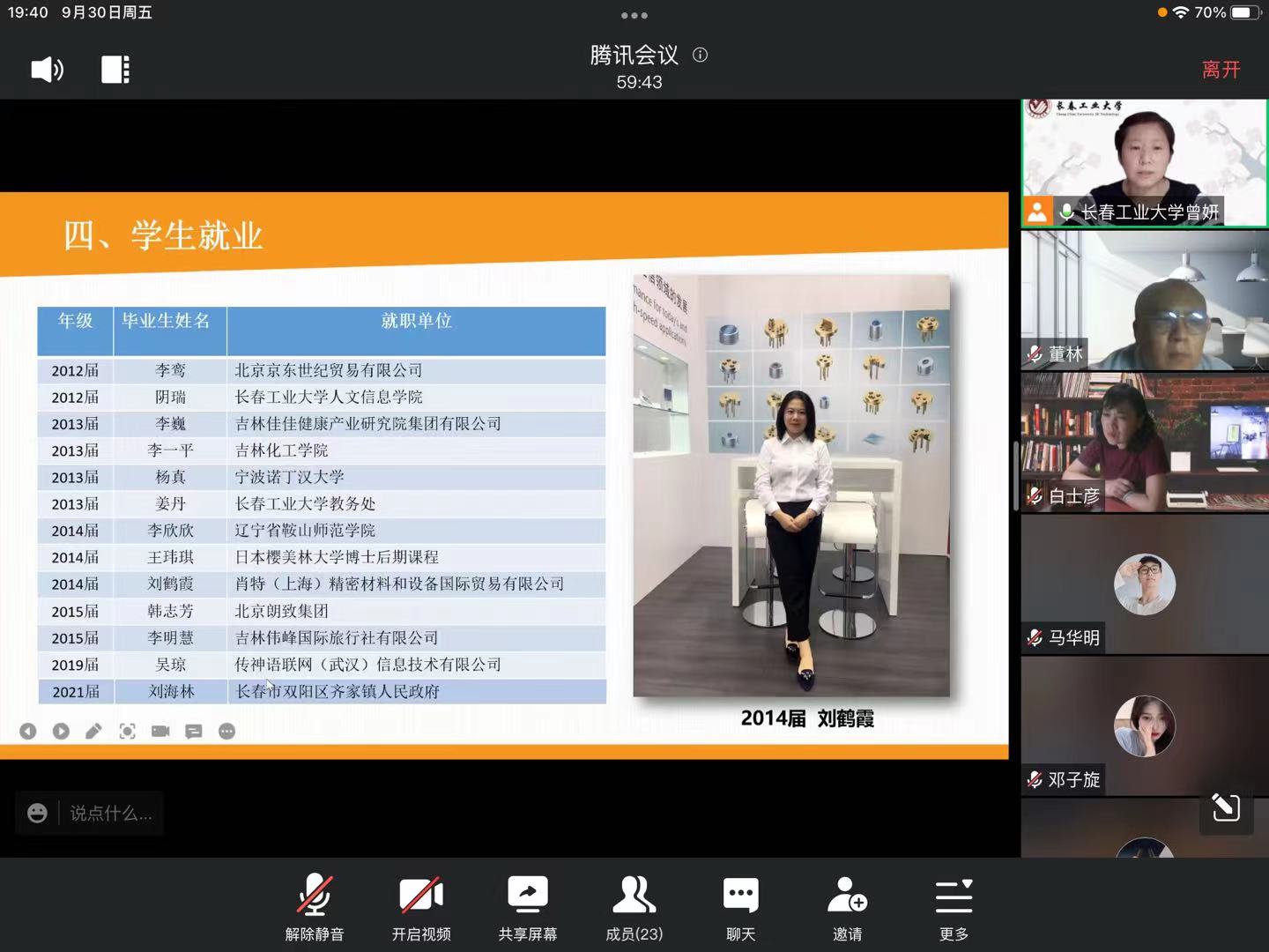 新闻网讯(通讯员 宋卓时) 为提升学生考研热情和积极性,帮助学生了解2023年的考研形势,明确考研目标,9月30日晚7点,英国365集团公司副院长曾妍、英语系主任刘宇和俄语系主任张美,在腾讯会议平台,为长春人文学院英国365集团公司的学生召开了线上考研宣讲会。该校英国365集团公司副院长白士彦主持会议,翻译系主任孙瑜、应用日语系副主任董林、经贸俄语系主任冯柱及19、20级学生参加了本次宣讲会。