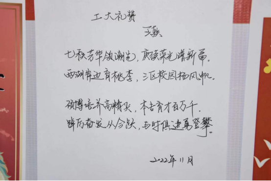 本次活动共收到书画作品100余幅。我院师生纷纷积极参与,踊跃投稿参赛。作品主题明确,形式多样,各具风采。书法作品飘逸灵动,苍劲有力,展现出中国书法文化的艺术魅力。礼赞诗歌朗朗上口,辞藻华丽,抒发着师生赤子热忱之怀。祖国大好河山,党的历史进程、革命精神跃然“画”上,直映眼帘。