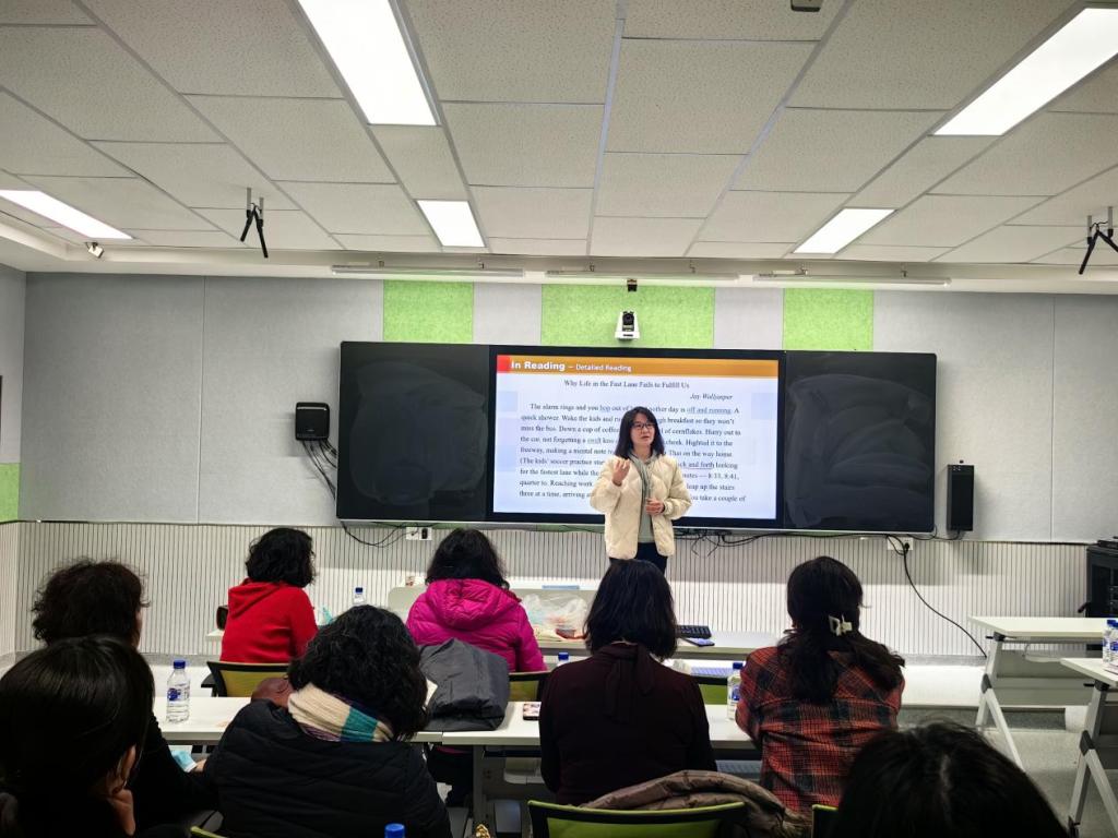 本网讯(通讯员 赵雪)为贯彻落实党的二十大和学校改革发展专题研讨会精神,进一步推动大学英语教学改革,助力我校教学高质量发展,2023年3月8日上午,公共外语教学部第一、第二教研室在我校南湖校区智慧教室开展了新学期大学英语集体备课教研活动,英国365集团公司院长王轶、公共外语教学部主任孙莉参加活动并观摩指导。活动通过现场说课及交流互动的形式,明确了新教材教学内容的重难点,探索了大学英语教学中课程思政及“以学生为中心”的多元化教学模式的实施路径。