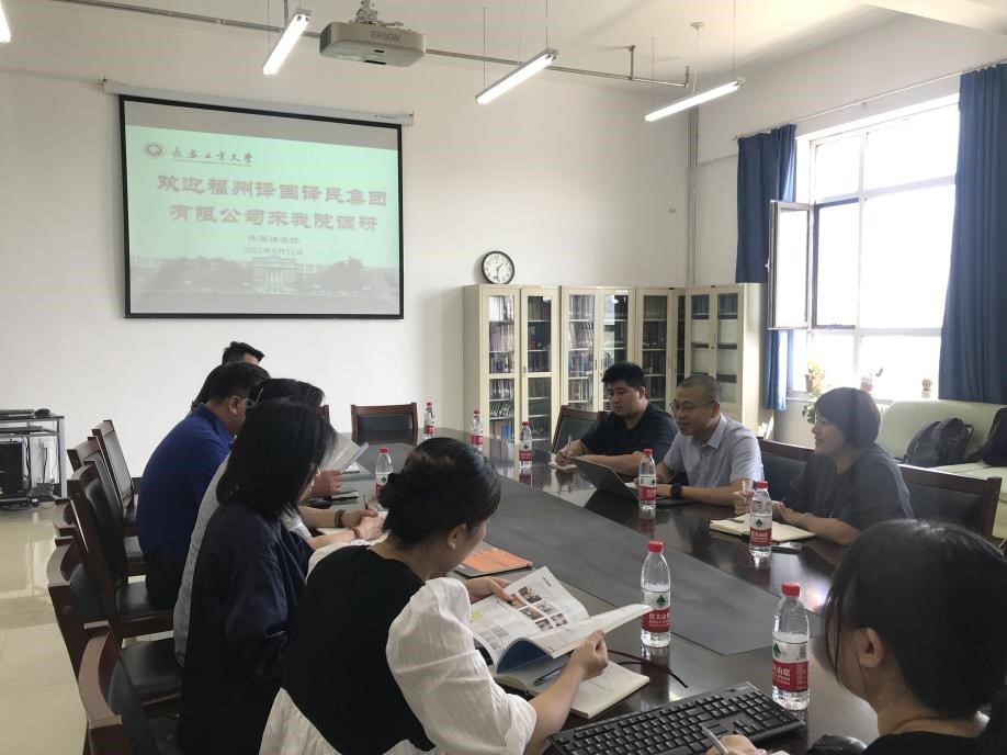 洽谈会上,张子宇、王轶代表学院对福州译国译民集团有限公司的到访表示热烈的欢迎。王轶院长对学院办学特色、学科建设以及毕业生就业等相关情况进行了介绍,并提出希望能与企业通力合作、优势互补,在学生就业、实习实践基地建设等方面开展高质量合作。