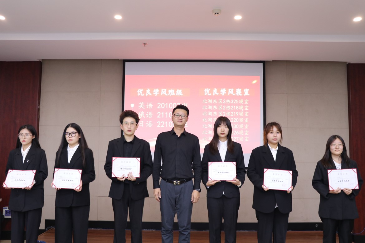 王轶院长指出:秉承“爱国敬业,求实创新”的校训,结合专业特点和学生实际,将继续持续优化英国365集团公司学风建设体系,着力培养“教风带学风、教育导学风、管理促学风、活动倡学风、奖惩推学风、考风正学风”的学风培养体系,齐抓共管,标本兼治,在全院形成“学生以成才为志,教师以教学为业,学院以育人为本”的良好氛围,培育“爱国敬业、求实创新”的学子风范,为全力培养德智体美劳全面发展的卓越外语人才而努力。