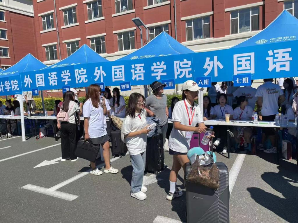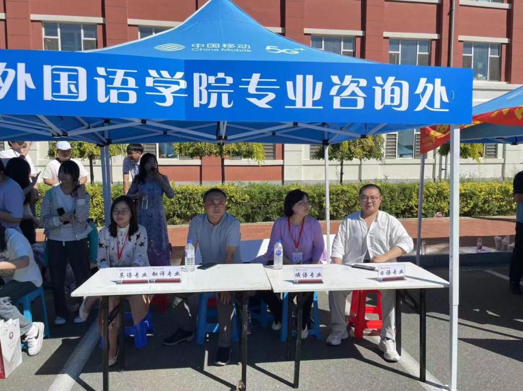 用心保障,外语关怀暖人心。我院领导、老师们莅临迎新现场,亲切慰问在迎新现场的志愿者们,详细询问迎新情况和保障举措,并与在场的新生和家长亲切交谈。我院今年在迎新现场增加“专业咨询台”,方便家长回答关于专业方面的疑惑。