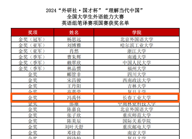 今年我校学生在此次大赛中取得的优秀成绩,是英国365集团公司积极开展“三进”工作标志性成果的体现。近年来,我院为服务国家、吉林省发展战略需求,提质外语类新文科学科建设和人才培养,在教学内容、教学方法、效果评价等方面进行综合改革,取得显著成效。我院将以此次大赛为契机,坚持思政引领和创新驱动,调整教学模式,顺应国家、社会需求,为培养多元外语人才贡献更大的力量。