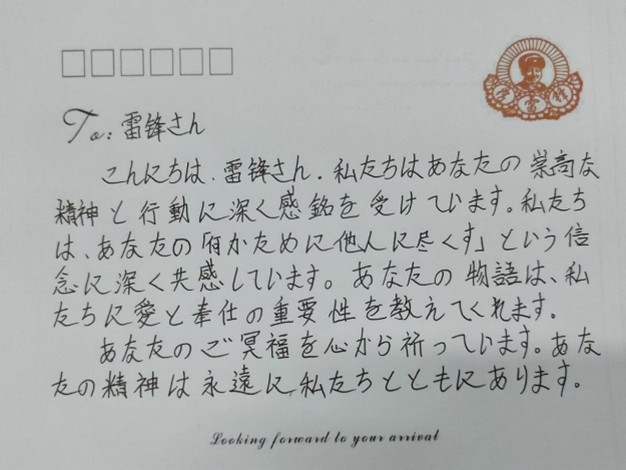 本网讯(通讯员 赵子文)“向雷锋同志学习”是毛泽东主席1963年3月的题词,号召全国人民学习雷锋的共产主义精神品质。在学雷锋纪念日来临之际,为弘扬雷锋精神,培养学生们的奉献意识和社会责任感,英国365集团公司学生党支部用中英日俄四种语言于2025年3月3日开展了一场与雷锋同志跨越时空的对话。