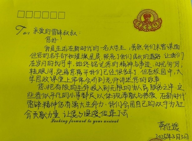 在新时代,雷锋精神被赋予了新的内涵,与社会主义核心价值观紧密结合,成为推动社会进步的重要精神动力。在这春暖花开的季节,让我们一起来读读同学们写给雷锋的一封封信吧!