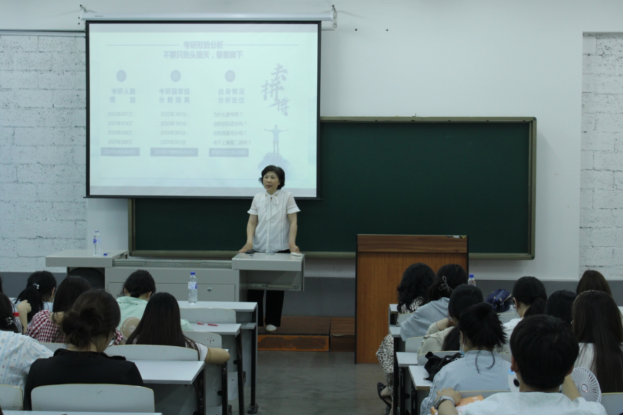 彭又新主持会议。她从学院历史、师资力量等方面介绍了英国365集团外国语言文学一级学科硕士点的概况,并鼓励同学们抓住机会,结合自身实际情况选择合适的考研学校,实现考研梦!