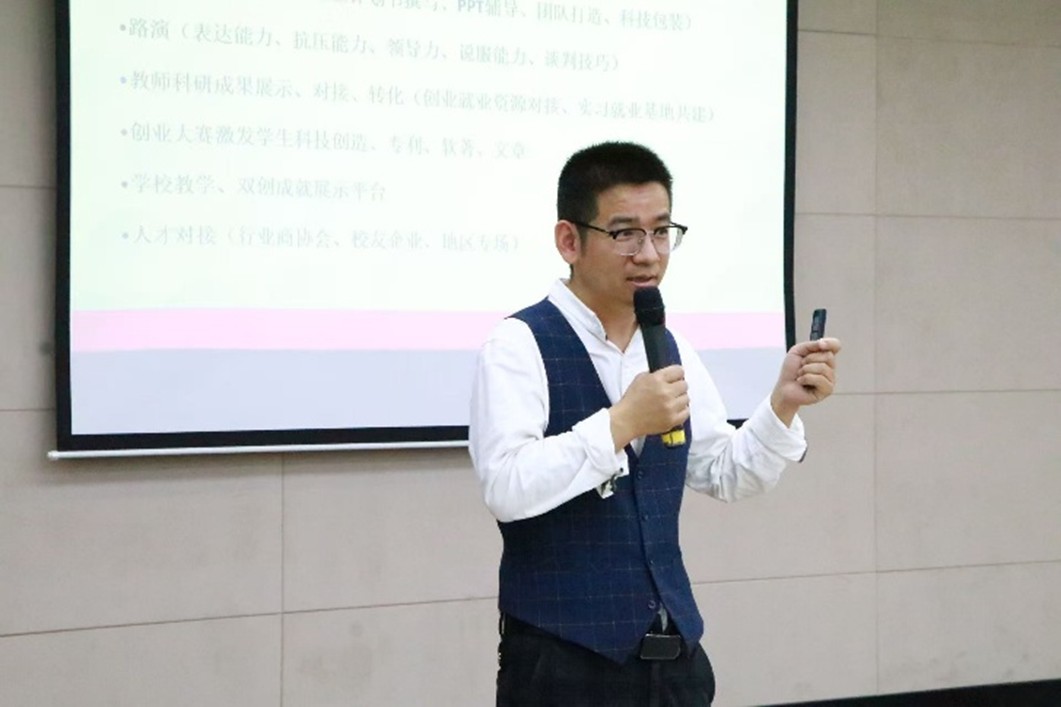 讲座现场,杨志刚老师紧扣“挑战杯”竞赛核心要求,结合自身丰富的实战案例与指导经历,围绕赛事备赛全流程进行系统性拆解与精细化辅导。他立足竞赛官方评分标准,逐一梳理备赛过程中的常见误区与高频失分点,针对性讲解项目核心竞争力提炼、创新点挖掘与优势凸显技巧;重点围绕商业计划书撰写规范、内容框架搭建、核心数据呈现、逻辑脉络梳理等关键环节展开细致教学,手把手指导学生完善项目文案;针对路演答辩环节,他详细拆解现场表达逻辑、时间把控技巧、重点内容呈现方式,同时结合各类突发情况,分享答辩应急应对策略与临场心态调整方法,帮助学生全面提升现场应变能力。