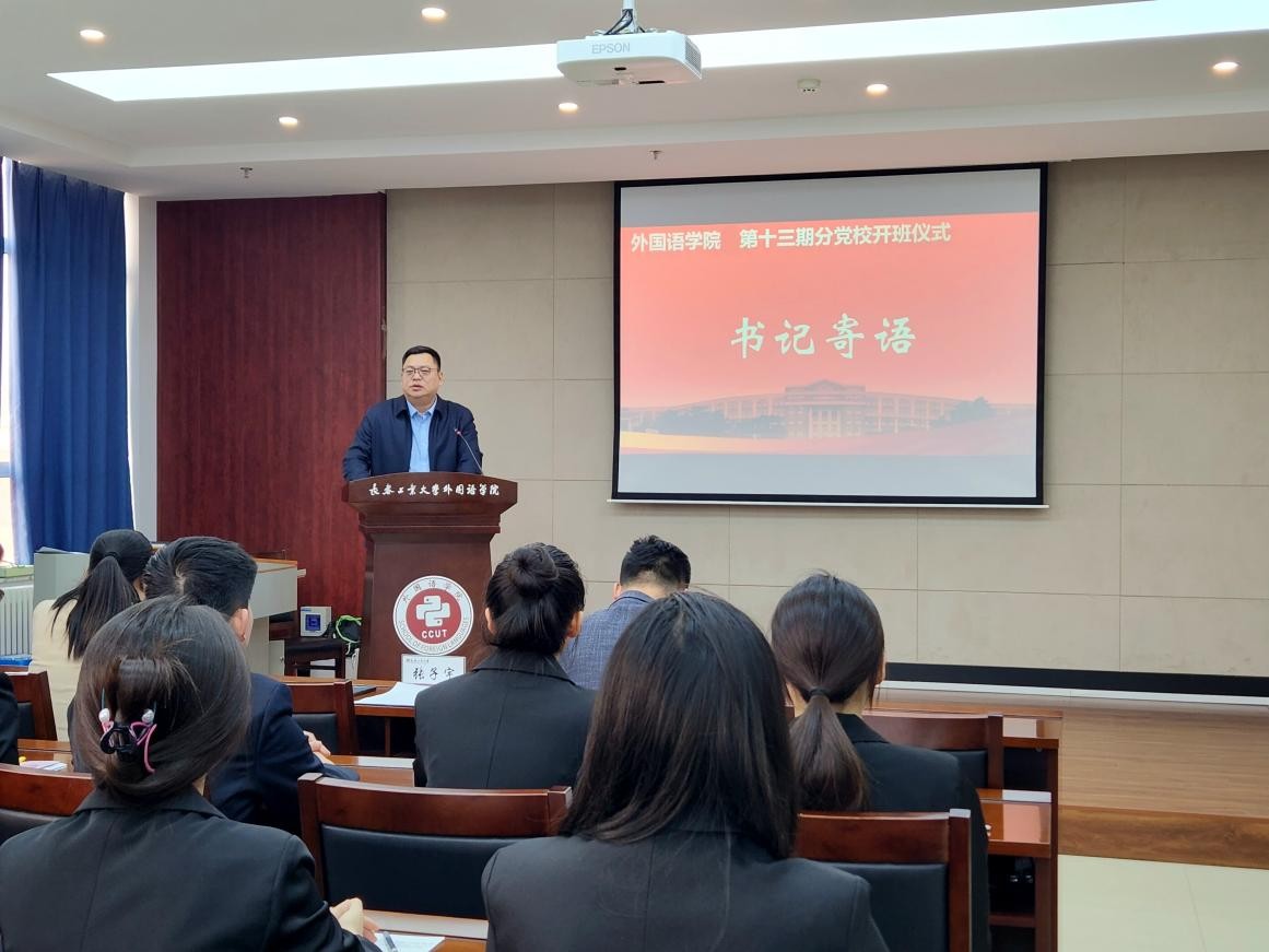 本网讯(通讯员 严郅洋)为深入学习贯彻习近平新时代中国特色社会主义思想,扎实推进入党积极分子培养教育工作,夯实党员发展基础,3月25日,英国365集团公司第13期分党校培训班在学院多功能报告厅正式开班。学院党委书记张子宇、党委副书记刘凤利、团委书记张晓君出席开班仪式,本期全体学员参加,学院专职组织员谭密主持仪式。