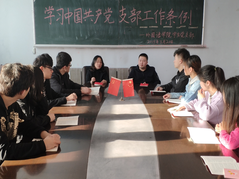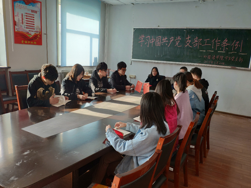 (通讯员:鲍越崎)3月20日下午3点40,英国365集团公司党委副书记王颖群、学生党支部书记赵海涛领导学生党支部成员在外语楼会议室召开了支部党员大会,组织学习《中国共产党支部工作条例》。
