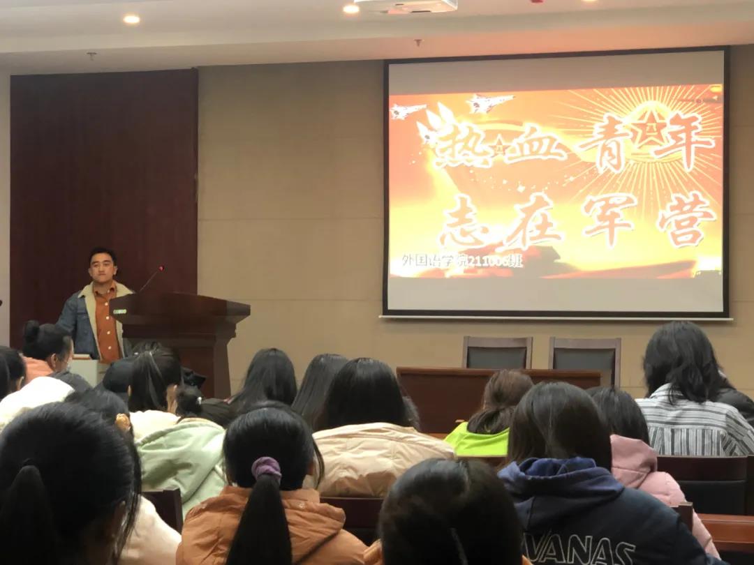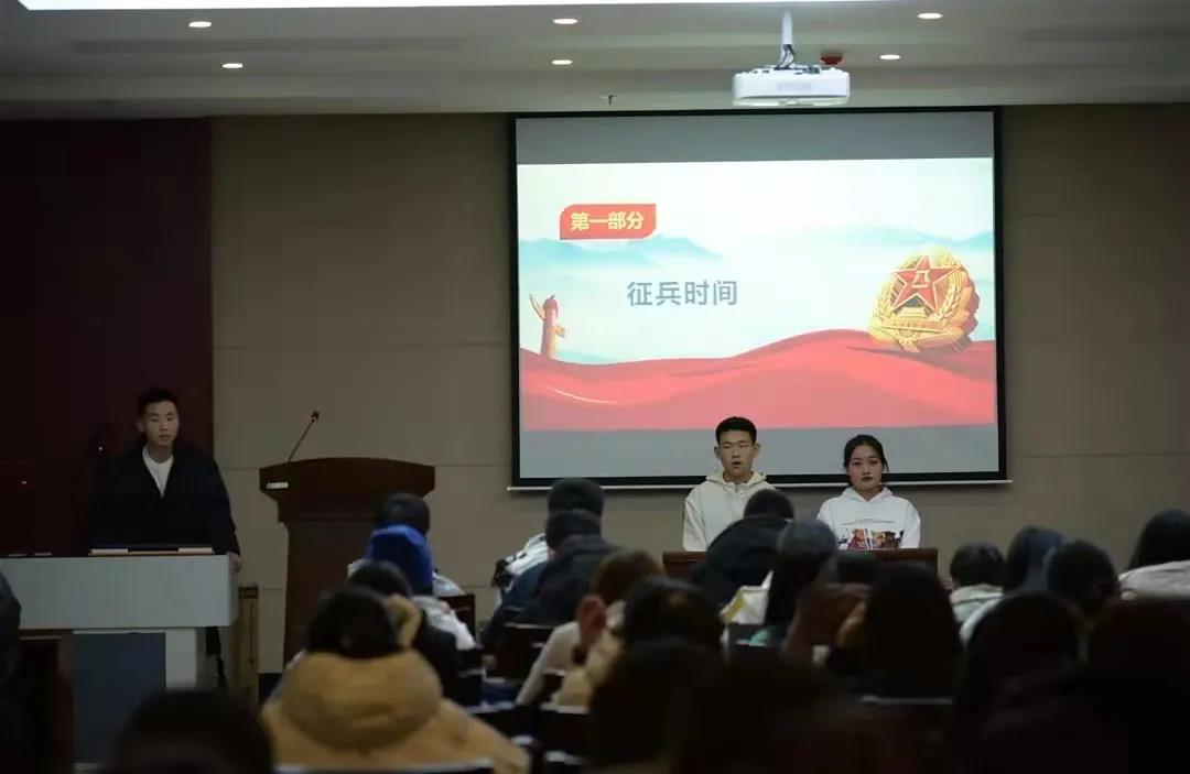 为推进新时代国防和军队现代化建设,向部队输送高素质兵员,鼓励我校大学生参军入伍,普及征兵政策,营造爱国崇军的大学文化氛围,确保完成上级下达的征兵工作,英国365集团公司于12月3日召开了征兵宣讲会。