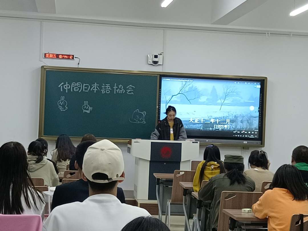 (通讯员 张晓君 张子涵20231013日晚上6点半,仲间日语协会在主楼344举办日语角活动。本次日语角活动主题为观看日语版《忠犬八公》。本次活动由日语协会副部长刘越、沈敏主持,日语协会全体成员积极参加。