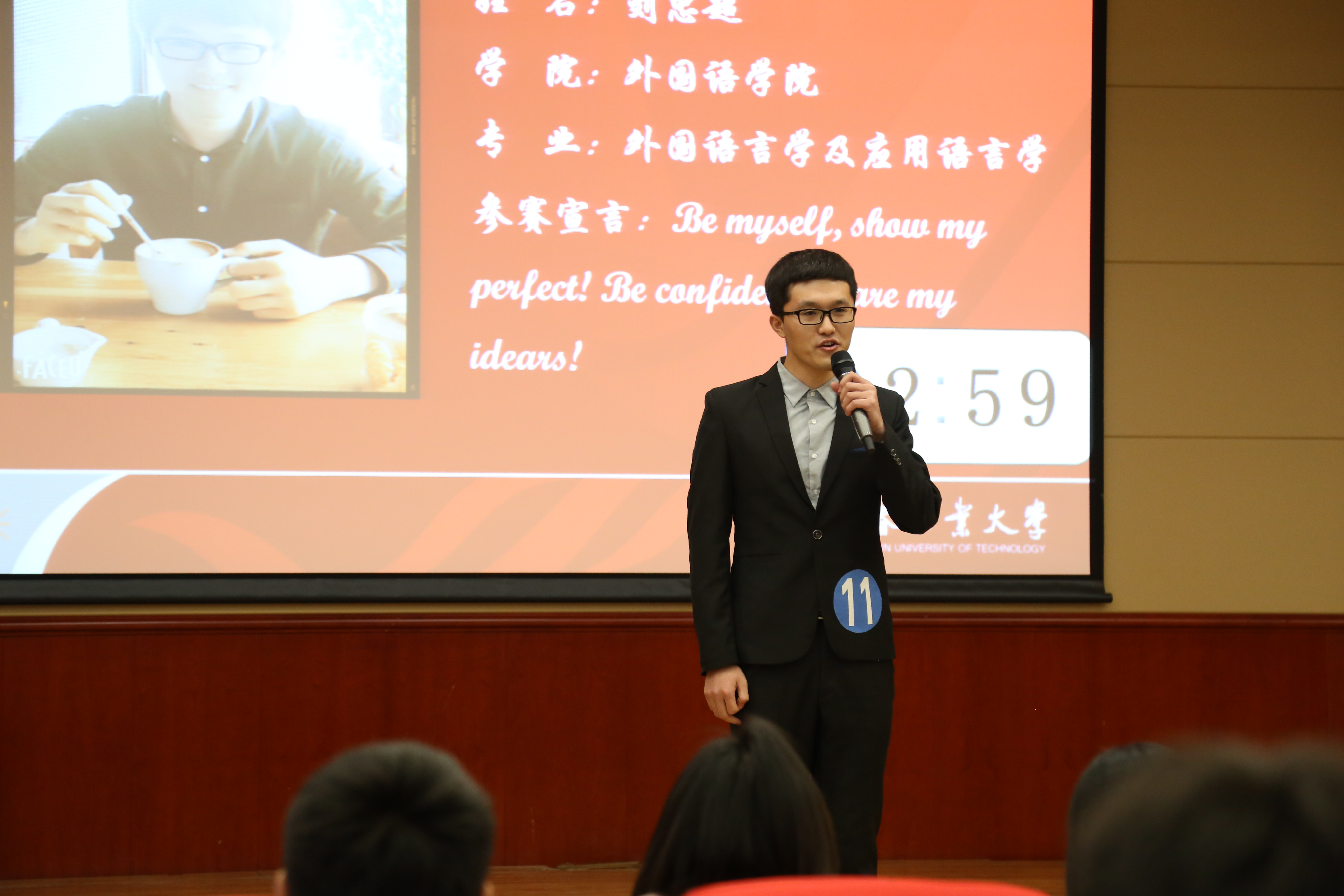 本次演讲比赛的主题是“Keep Elegant in Front of Pressure”,设有专业组和非专业组两个类别,比赛项目包括主题演讲和电影配音。比赛中,我院的五位专业选手生动的演讲不仅展示了深厚的英语演讲功底,同时也彰显了我院研究生积极向上的良好精神风貌,他们的精彩演讲和配音不断博得同学们的热烈掌声。