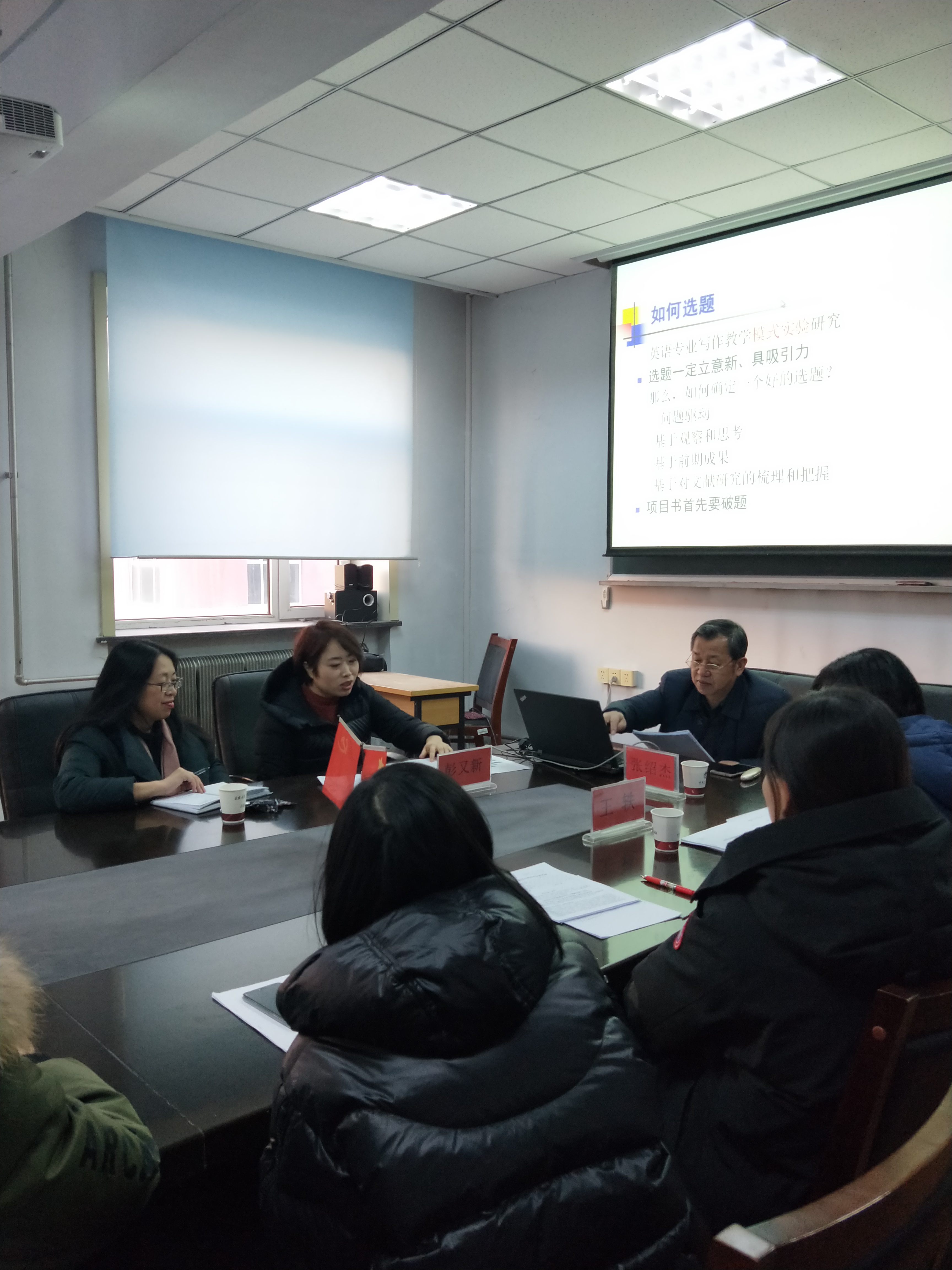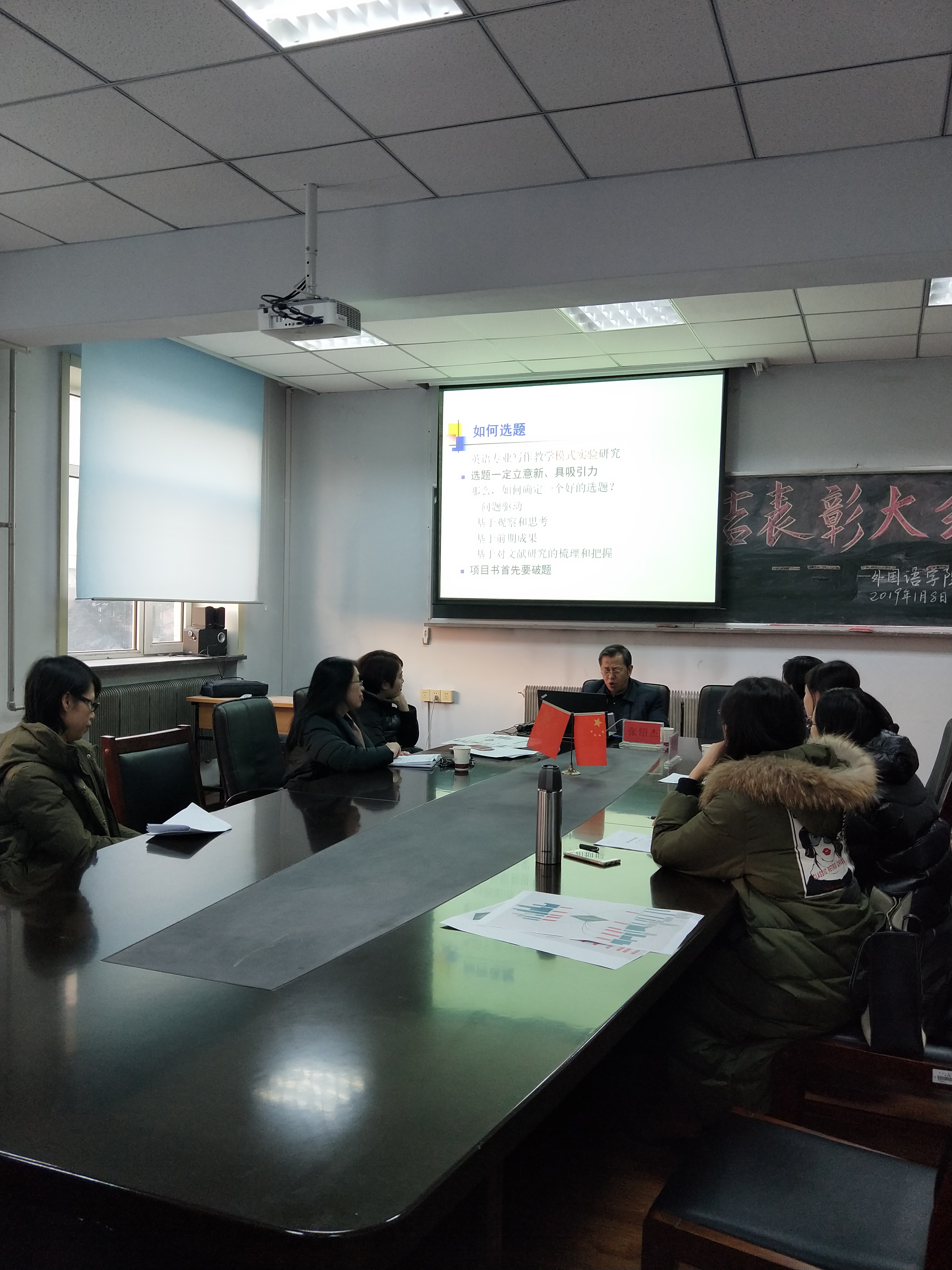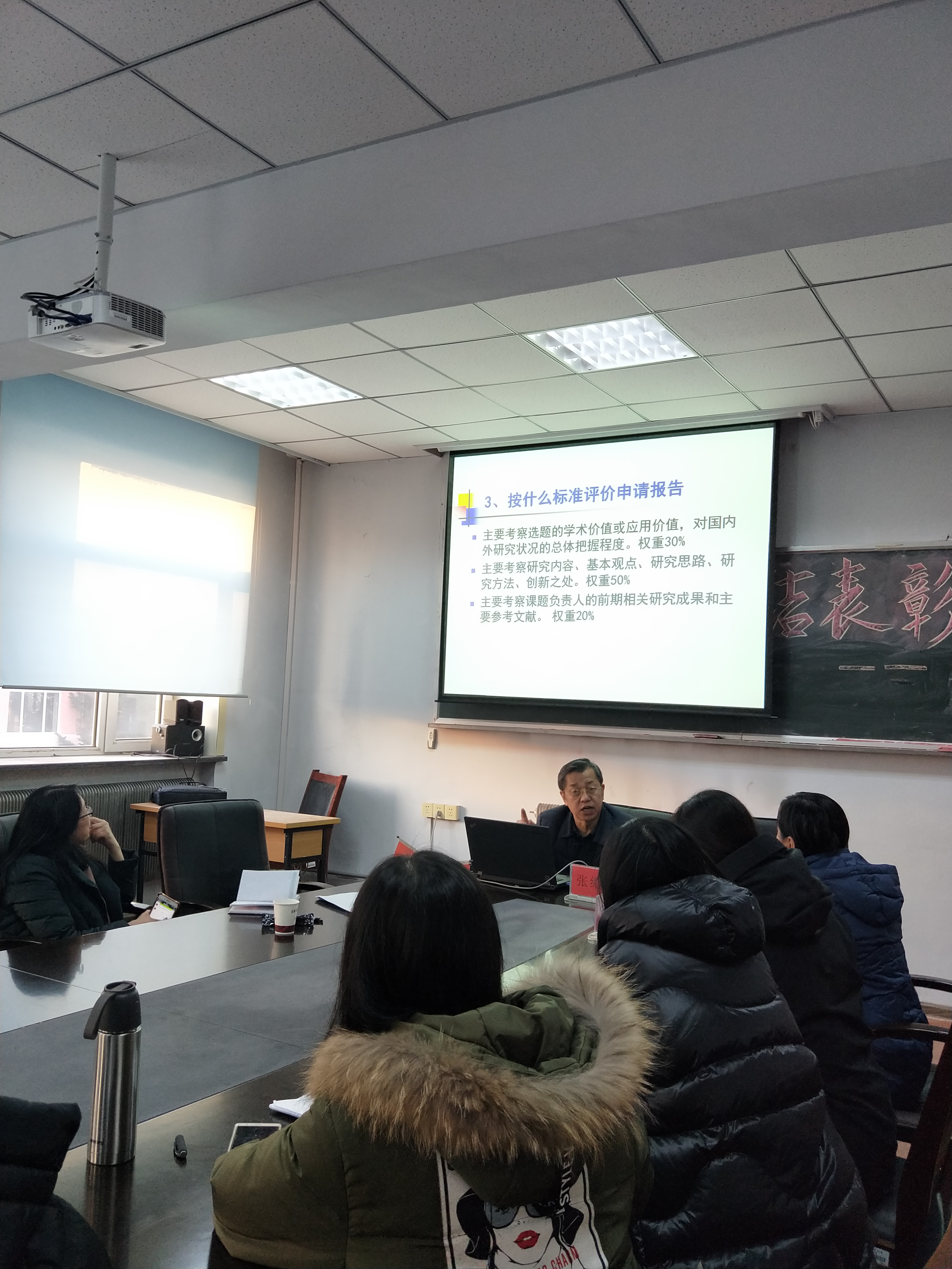 首先张绍杰教授给与会教师做了精彩的题为《国家社科基金项目申报解析》的报告。从如何选题、如何论证研究内容、如何梳理论证思路、如何设计研究方法等方面进行了详尽的解析,并结合拟申报教师的选题,进行了具体指导,给出了建设性的意见。随后张绍杰教授结合拟申报教师的申报书,做出了专项点评,让教师们受益匪浅。在活动的最后张教授对教师们遇到的疑问给与了精彩的解答,并对申报教师给与了极大的肯定和鼓舞。